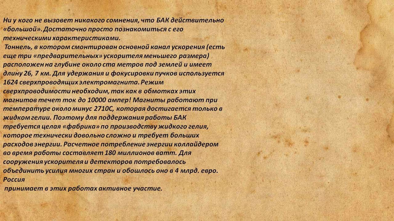 Большим его назвали благодаря его солидным размерам: длина основного кольца, по которому гоняют частицы, составляет порядка 27 км.